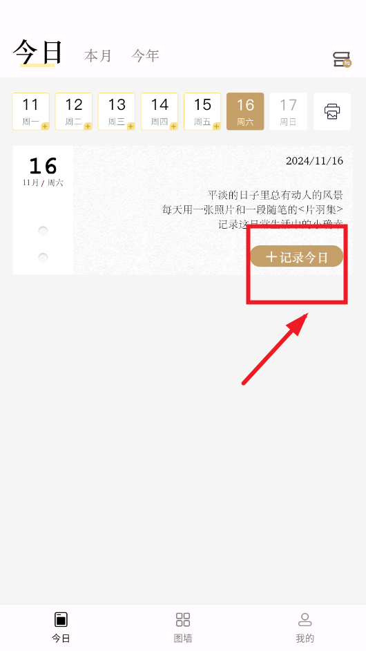 ◎ 每日挑选一张自己满意的照片添加进去,再用文字记录下当时的心情、所处的地点、当天的天气,或是那一刻的感悟、发生过的故事。