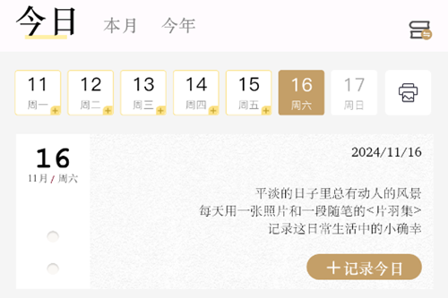 片羽集的界面设计温馨且饱含情感,能让用户轻松沉浸于记录的氛围里。不管是喜悦、哀伤、思索还是体悟,用户都可以借助文字、图片或是语音,自在地记录下每日的心情以及生活中的细微片段。这种充满情感的设计,让片羽集不只是一个记录工具,更成为了情感的寄托与释放的出口。