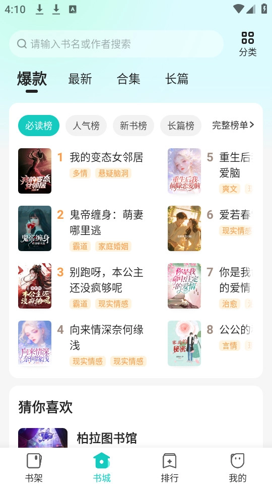 软件搭建了一个小说排行榜,榜上罗列的都是备受读者喜爱的小说作品。