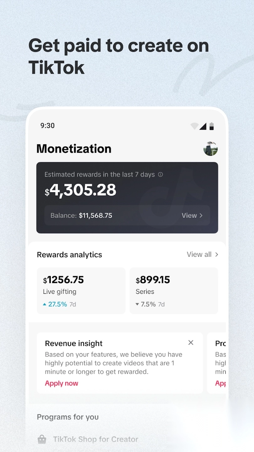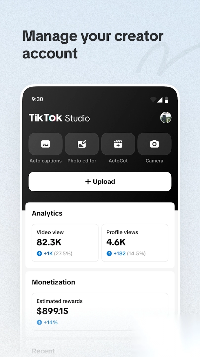 货币化:借助TikTok Studio提供的个性化货币化建议,发掘更多能让您的创意变现的机会。还有高级分析功能,能帮助您更深入地了解自己的收益情况,从而轻松优化奖励绩效。