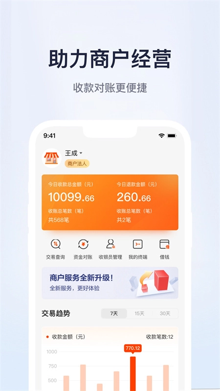 由中国邮政储蓄银行投资开发的一款线上应用,具备统一收单功能与统一商圈生态,构建起融合收单工具、商户服务工具及智能产业工具的商业场景生态体系。