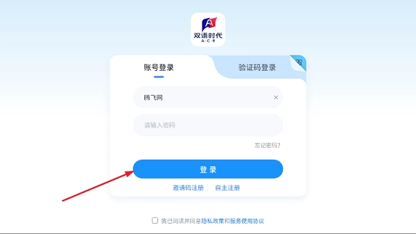在双语时代ACE登录页面输入个人账号完成登录操作。