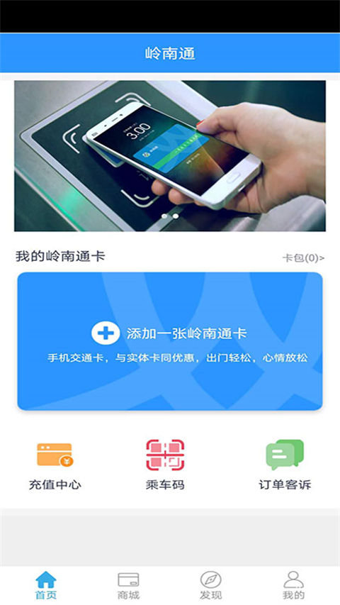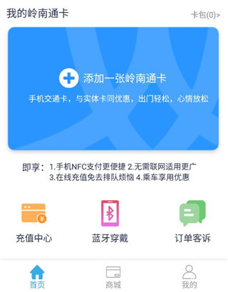 用户在本站安装并打开软件后,进入岭南通界面,点击添加一张南岭通卡。