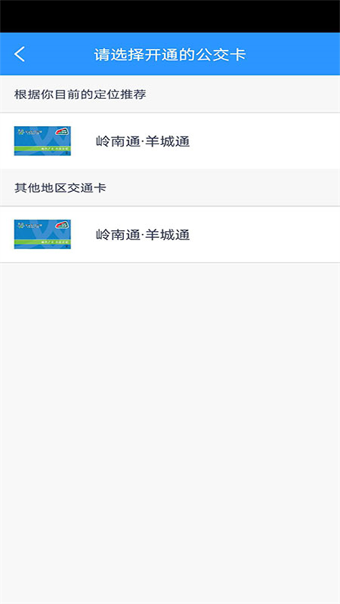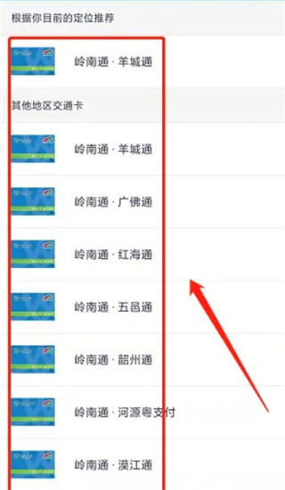 进入选择开通公交卡的界面后,选定要开通地区的交通卡,再选择进行绑定操作。