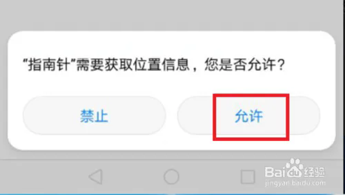 点开后,部分手机可能会弹出“指南针”请求获取位置信息的提示框,此时我们点击蓝色的“允许”按钮就可以了。
