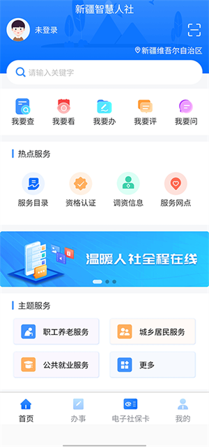 新疆智慧人社的界面设计得十分简洁,各项功能都按照类别清晰地整合在一起,即便是对手机操作不太熟悉的用户,也能快速学会使用这款软件,有需要的朋友赶紧来体验吧!