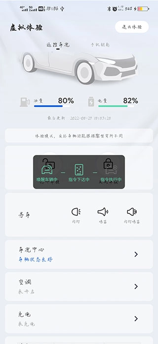 大家在绑定成功后,就能通过软件实时查看车辆的基本状态,比如门锁是否全部锁好、后备箱是否关好、双闪灯是否关闭等情况。