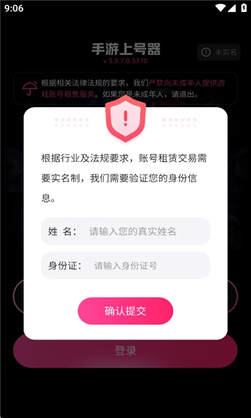 在本站完成安装并打开应用后,首先输入您的姓名与身份证号,随后点击确认提交按钮以完成实名认证流程。