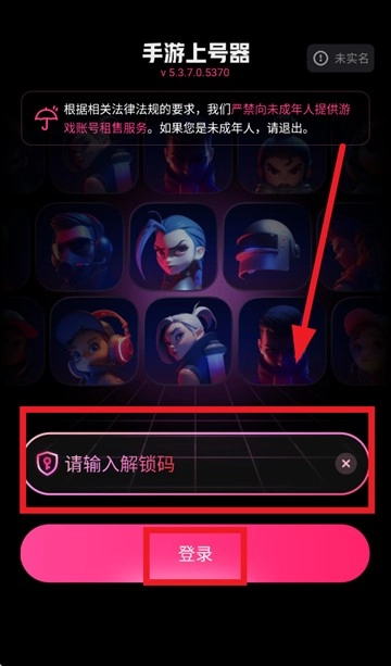 然后输入解锁码,点击登录即可