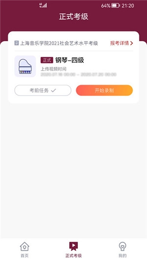 登录后点击“考级”选项,在出现的模拟考级和正式考级中,选择进入正式考级。
