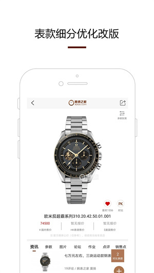 发现,查看到大量的腕表资讯、腕表行情、经销商信息等。