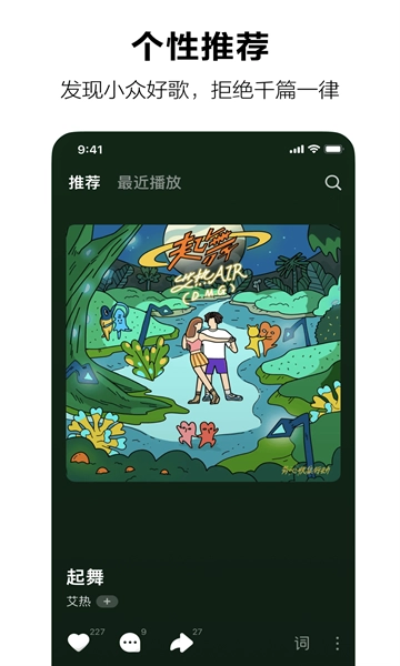 找到一首合心意的好歌其实并不难。我们会依据您的音乐偏好,为您推荐专属的喜爱曲目,而非提供千篇一律的内容。