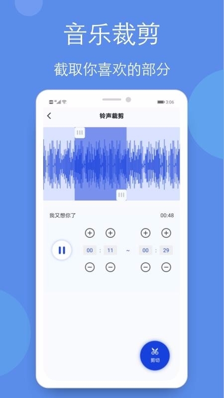 音乐剪辑铃声手机版是一款实用的音乐铃声编辑工具,支持对录音进行实时编辑与剪辑,能精准打造用户所需的内容,充分满足个性化需求。用户可根据自身需要选择功能,借助强大的工具实现音频拼接,还能自定义调节音效,感兴趣的朋友不妨体验一番!