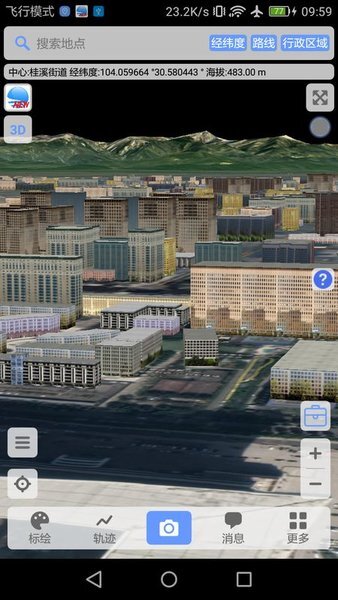 具备移动轨迹记录功能,能够查看高度差;通过剖面图可浏览不同时刻的三维建筑模型、地形地貌、卫星地图等影像内容。
