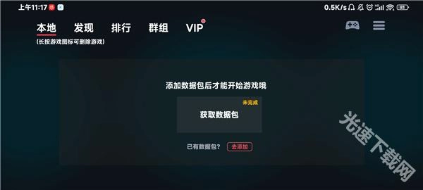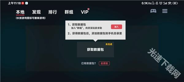 点击获取数据包,加入群组后向资深玩家求助,获得数据包后再添加;