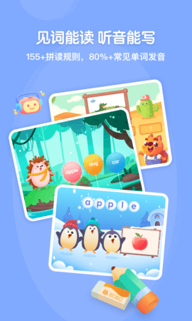 步步自然拼读是一款面向6至10岁儿童开发的英语学习软件,其涵盖的内容十分充实,包含150多项拼读规则以及超过80%常用单词的发音教学。借助这款软件,孩子们能够较为轻松地掌握“见词能读、听音能写”的自然拼读技巧,从而提升自身的自主阅读水平。该软件采用场景化、互动式的幼儿英语学习模式,让孩子在游戏过程中认识并理解英语字母与单词的含义及使用方法。