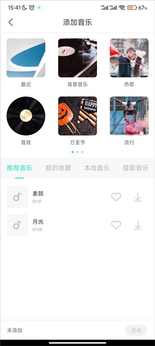 选择录音大师自带素材或本地音乐。