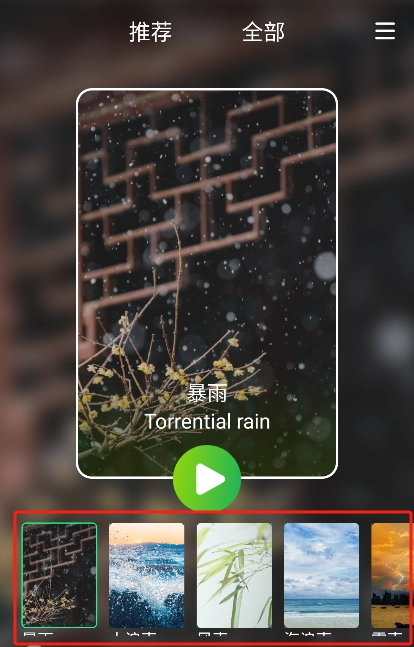 打开软件后,在主界面挑选自己喜爱的白噪音种类,像雨声、雷声这类都可以。