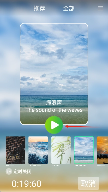 点击播放按钮,聆听白噪音,帮助放松和入睡。