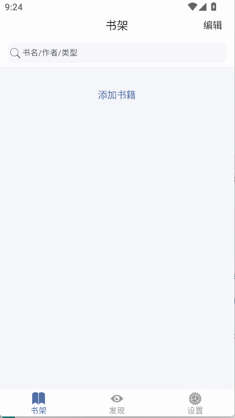 在“书架”页面中间位置点击“添加书籍”按钮,就能从本地设备导入小说资源了。