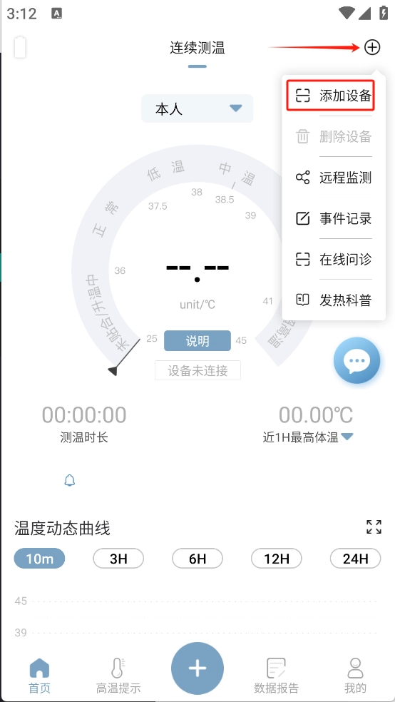 然后在软件里找到“添加设备”选项,点击后进行搜索并让系统自动连接,一旦连接成功,体温计就会闪烁3次灯光。