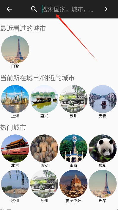 打开应用后,在首页使用搜索功能,挑选出我们旅行计划里打算参观的景点。