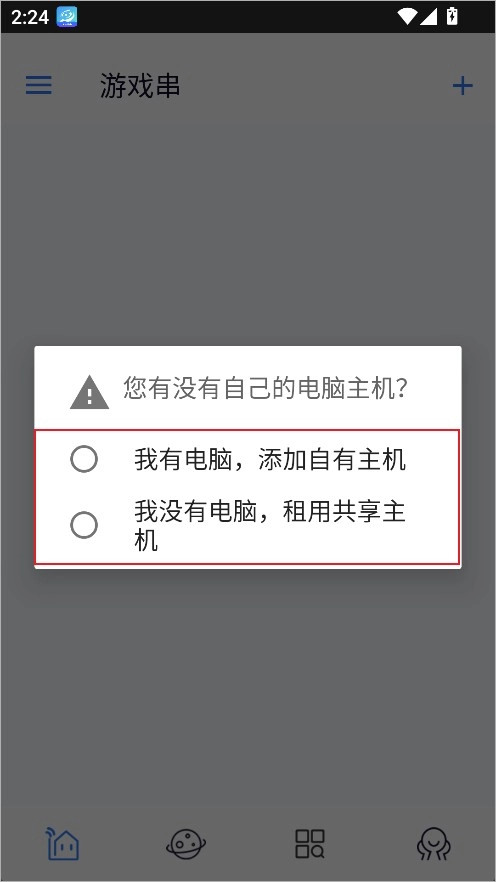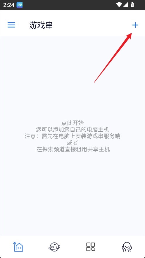 打开游戏串App后,点击右上角的“+”图标进入添加界面。