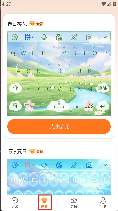 登录成功后切换至“皮肤”板块,在这里我们能够浏览各式各样的输入法皮肤。