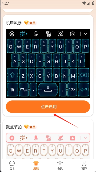 当选择完毕后,点击所选皮肤下方的“点击启用”按钮就能完成换肤操作。