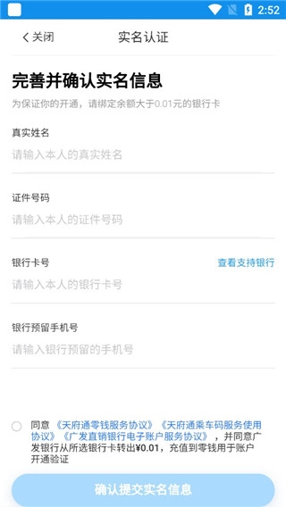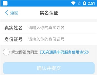 要是选择账户认证,需在实名认证栏填写本人姓名等相关信息,信息填写完毕就能启用乘车二维码。