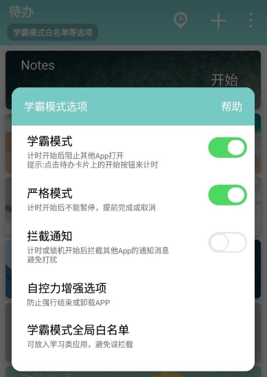 点击左上角代办事项,选择开启学霸模式即可。