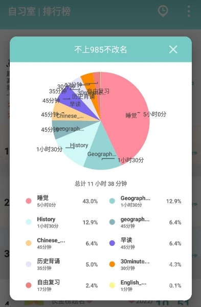 和朋友一起加入自习室,并肩努力,较量专注时长,还能查看各自的专注时间分布情况。