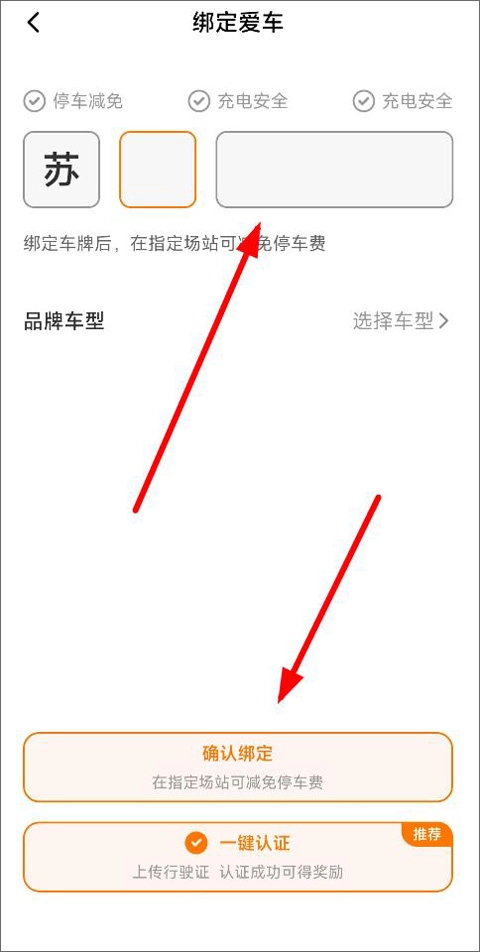 在车辆绑定页面,输入车牌号,选择对应的车型,最后确认绑定操作就完成了。