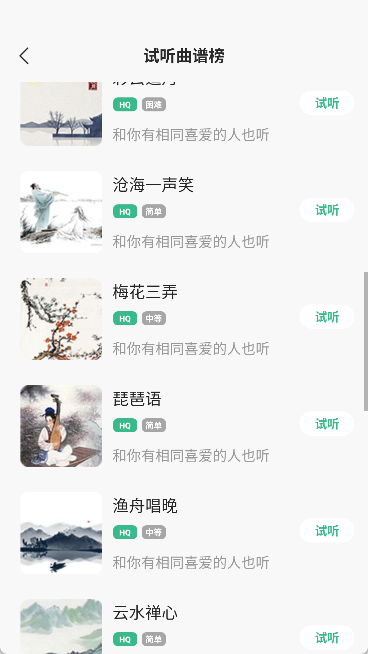 丰富曲库:涵盖全国众多古筝演奏考级曲目,助力您提升专业水准。
