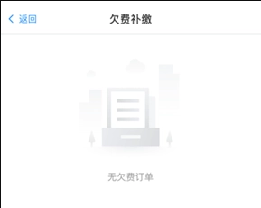 接下来您就能看到自己的欠费订单情况,我这边目前没有欠费订单。要是您存在欠费订单,只需要点击补缴按钮并完成支付流程就可以了。
