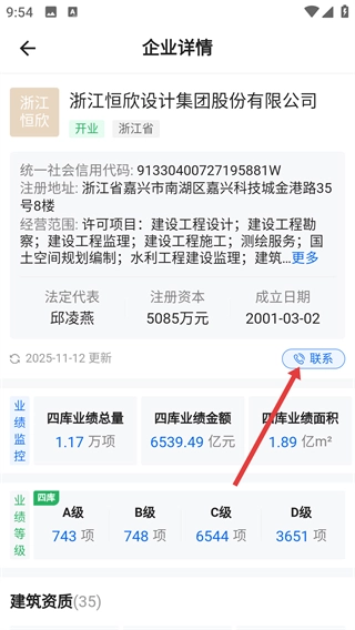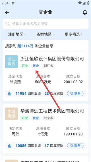 在企业查询页面,挑选你想查看的企业,例如【浙江恒欣设计集团股份有限公司】,随后进入该企业的详情页面。