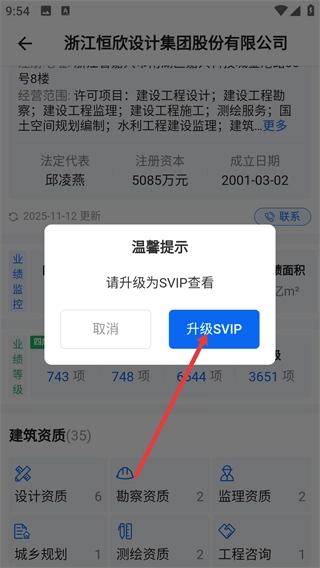 若想查看企业联系信息,需要升级为SVIP,点击【升级SVIP】按钮就能完成会员升级操作。