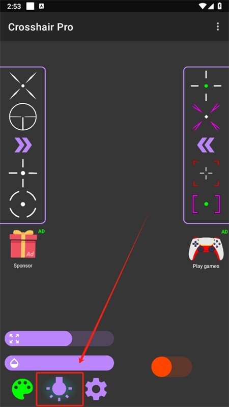 然后打开软件进入主页,点击下方的调色盘来设置准星的颜色。