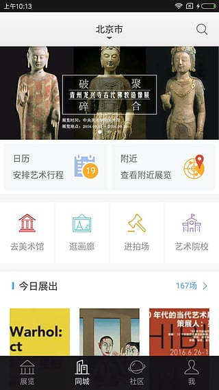 点击打卡签到,还能查看附近艺术机构;