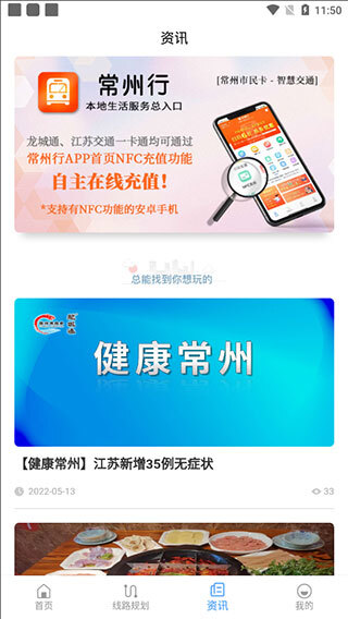 进入常州行,你能够查询出行线路、用二维码乘坐公交以及给市民卡充值。