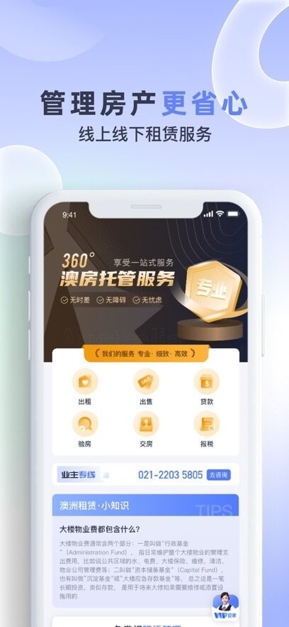 鱼掌门每年为用户提供澳洲房产交房协助、出租管理、贷款转贷降息、税号申请及报税等全方面业务支持。通过澳洲本地团队与国内专业团队的强强联合,再加上VIP私人管家一对一的专属服务,让海外房产管理变得轻松简单。