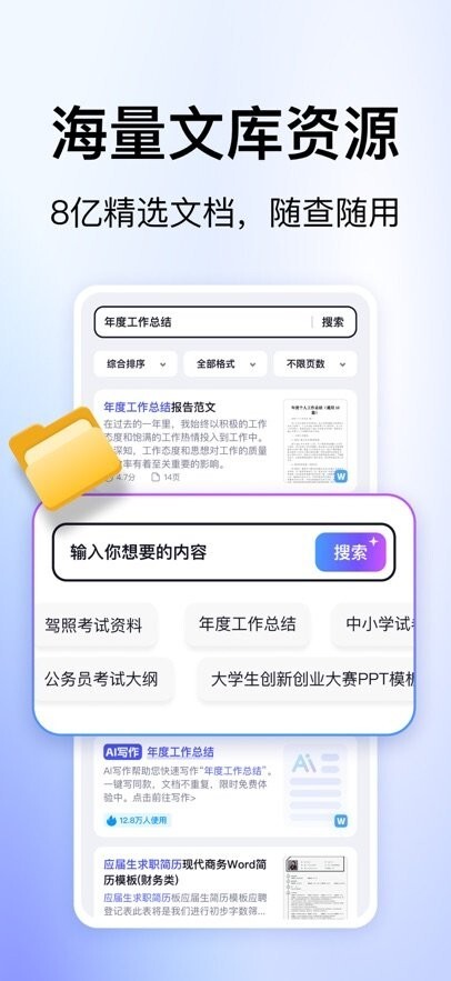 是超8亿精选文档,对很多有创作需求的用户而言,也可以体验到很多便利,随时可以激发大家的创作灵感。想要的一些内容在这个平台上随时都可以轻松生成,操作起来不复杂,满足大家的需求。