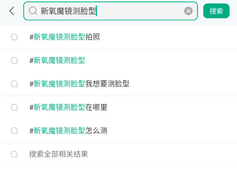 要使用测脸型功能,可在首页顶部的搜索栏输入“新氧魔镜测脸型”,然后点击搜索按钮即可。