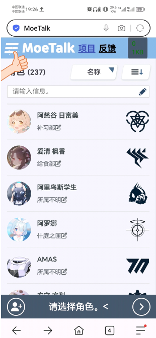 首先打开moetalk,你会发现里面的角色并非尘白禁区的。