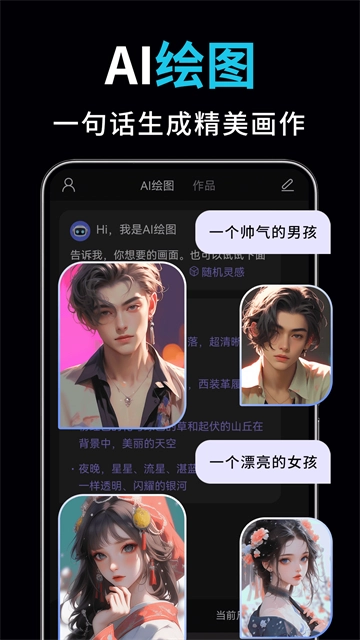 AI视频绘图写作精灵所配备的AI绘图工具,能够依据你给出的文字描述,创作出风格丰富多样的画作,从而为视频内容或是用于分享的素材提供别具一格的配图支持。