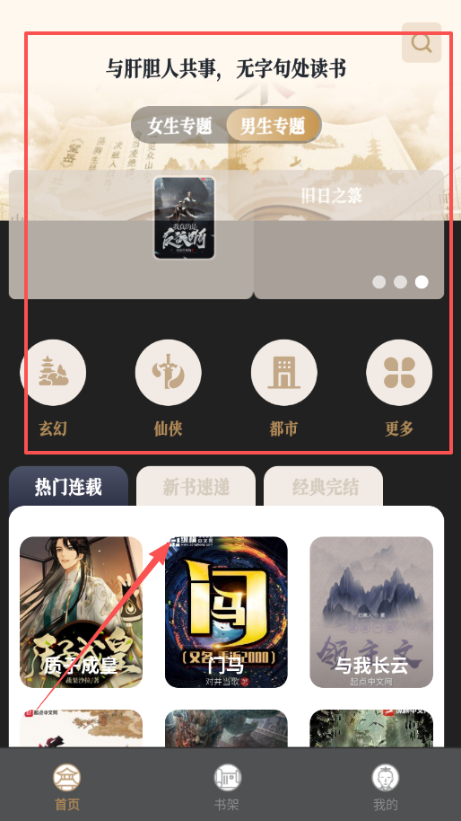 打开米禾阅读后,第一次使用的话,可以先看看首页的推荐热门书籍板块,要是发现有感兴趣的内容,直接点击就能开始阅读啦。