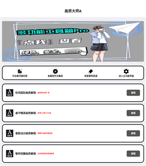 画质大师A免费版是一款专门为游戏玩家打造的画质优化工具,兼容《和平精英》《PUBG Mobile》《香肠派对》《黎明觉醒》等多款热门竞技游戏。借助对图像渲染技术的深度优化,该软件能够显著提升游戏画面的清晰度和色彩还原度,让游戏场景的细节更加丰富、视野更为通透;同时它还充分考虑设备性能,保障游戏能稳定高帧率运行,为玩家带来画质出色且运行流畅的优质游戏体验。