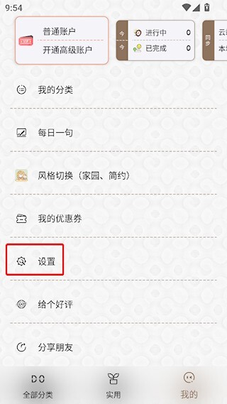 1、打开玩清单,进入“我的”界面,点击“设置”