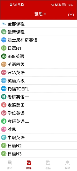 2、用户也能在此观看微课视频,这些视频教程由专业导师提供,内容涵盖如何写作文、练习口语、背单词等多个方面。