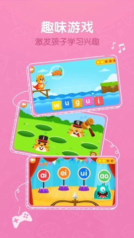 贝乐虎拼音的课程内容设计得丰富多样,主要通过教学场景和游戏的形式,帮助儿童科学、快速地学习与理解拼音。该应用借助丰富的游戏形式,针对拼音的形状、声调和拼读展开对应训练。同时,贝乐虎拼音采用语音互动教学方式,鼓励儿童主动发音,以此提升他们的语音表达能力。